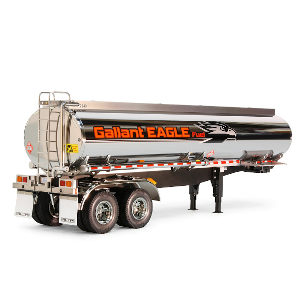 RC FUEL TANKER TRAILER DESCRIPTION The Tamiya 1/14 scale Fuel Tank Trailer has been revamped! This fuel tank trailer features a newly-designed original and imagined livery that was inspired by fuel tank trailers seen in the United States. The chassis and tank parts are based on Item 56303. ★Fuel tank section has been beautifully reproduced in stainless steel, with upper and lower decks made from aluminum. Metal parts enhance the model’s presence. ★Equipped with support legs which automatically retract when coupling with a tractor truck. ★Stickers included to depict the newly-designed original livery. Length=814mm