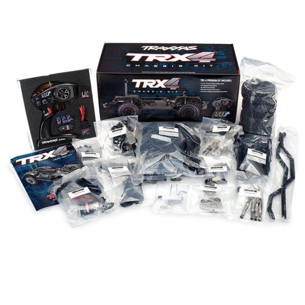 - TRX-4 Chassis Kit comes unassembled with a full-color assembly guide, all vehicle electronics, wheels, and tires (batteries, charger, and body sold separately)
